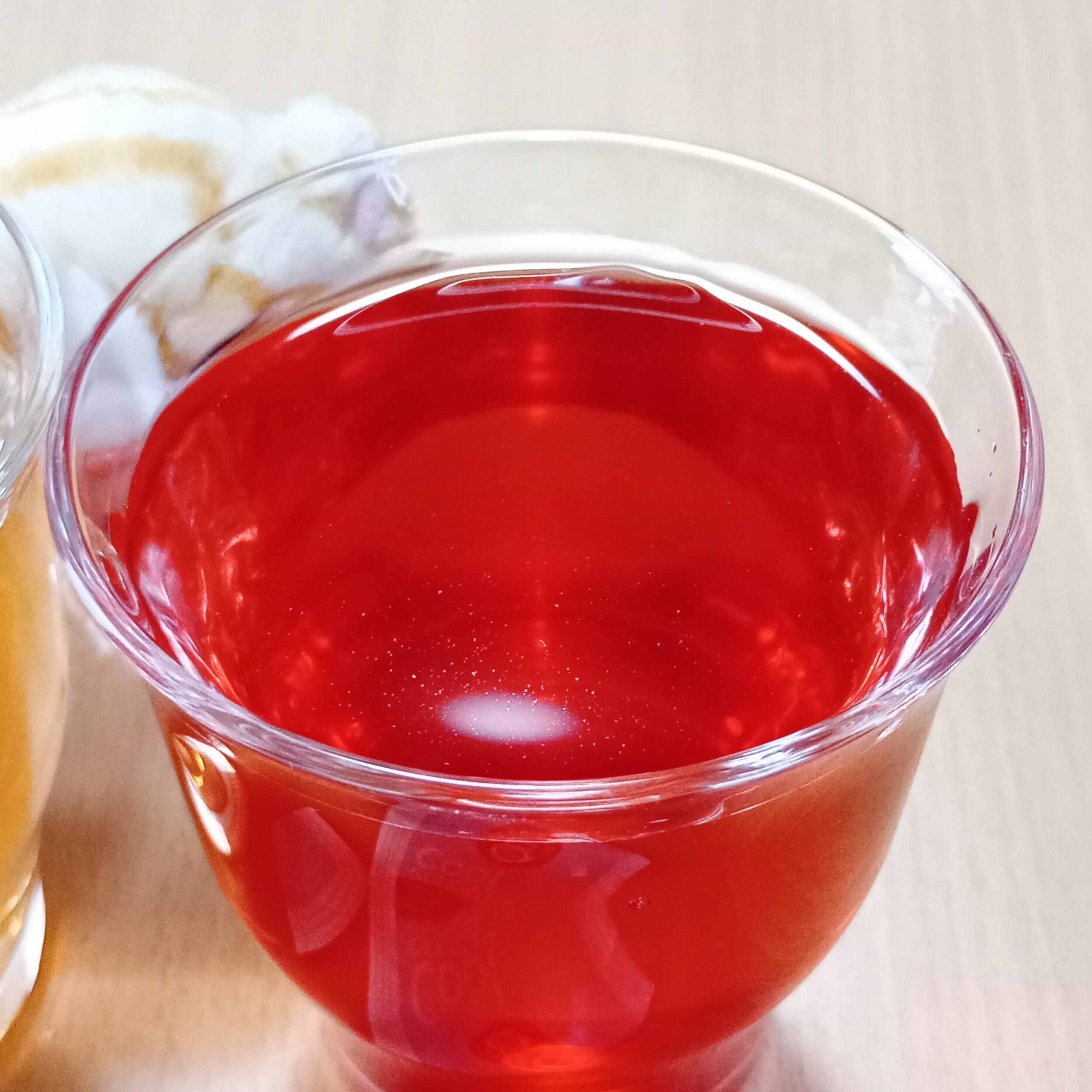 赤ピンクっぽい色合いで甘いパイナップルの香りのハーブティー🍍