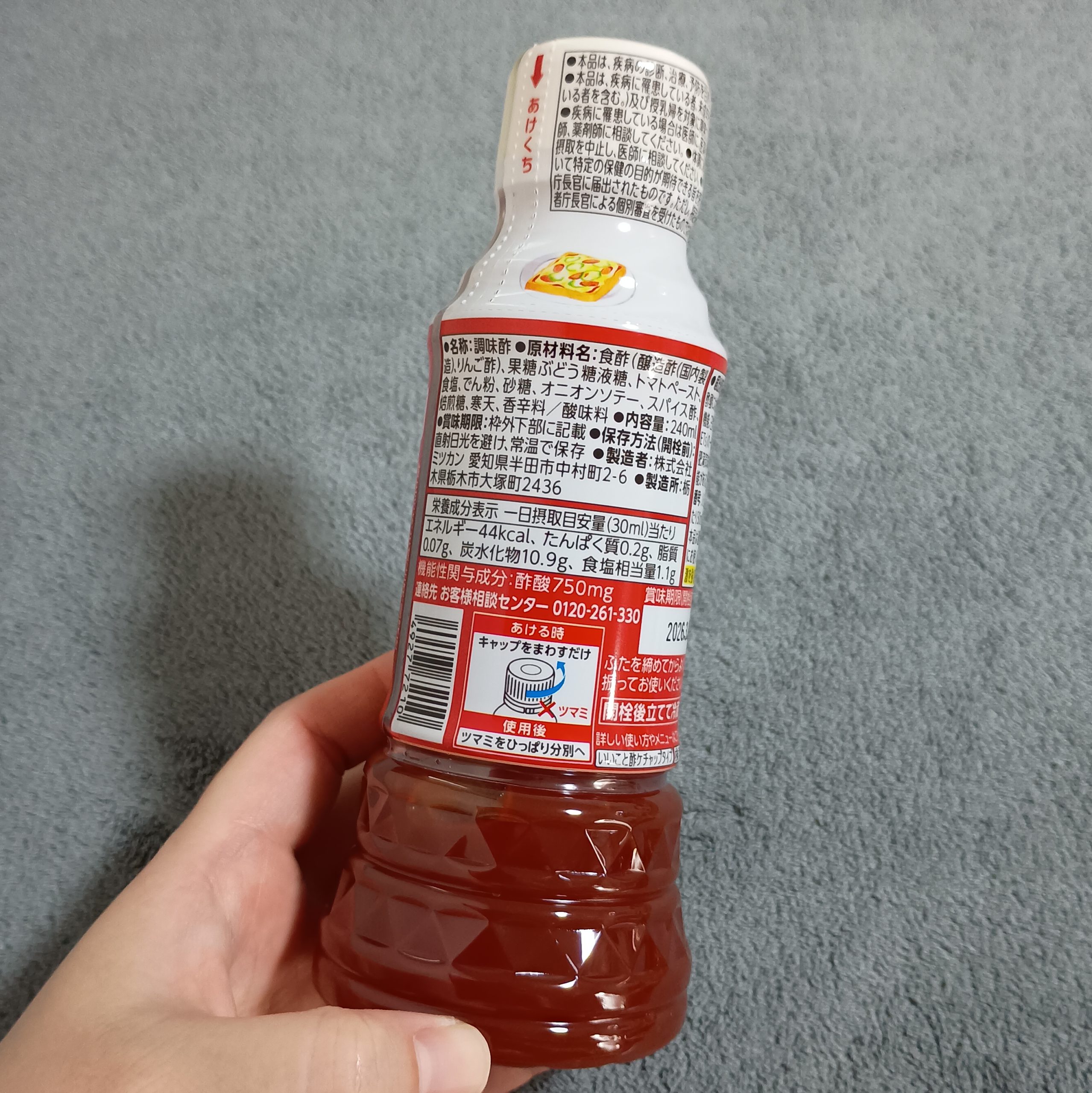 ケチャップと同様に使える機能性表示食品の調味酢です。