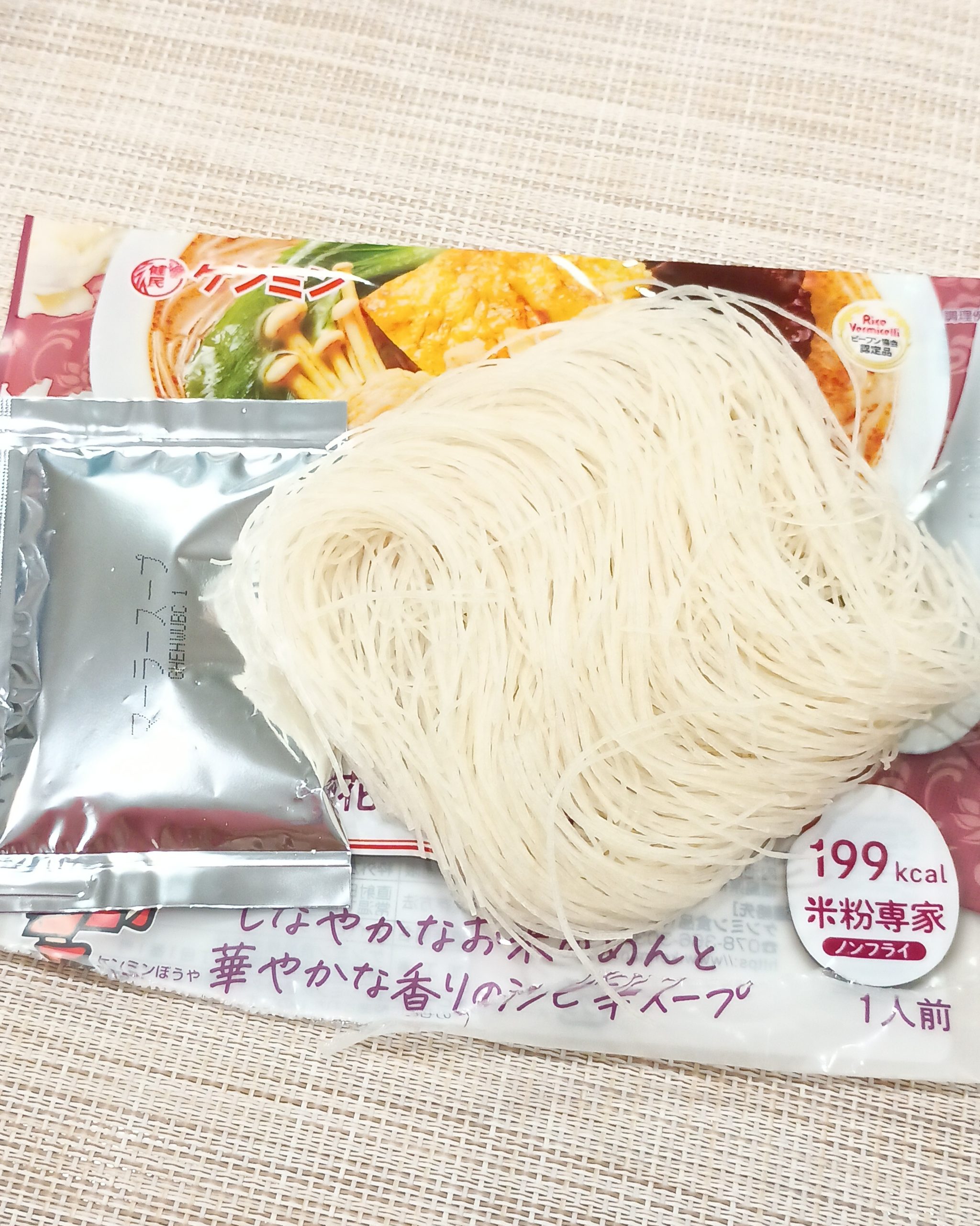 米粉のめんはつるっとした食感で、スープともよく絡みます。